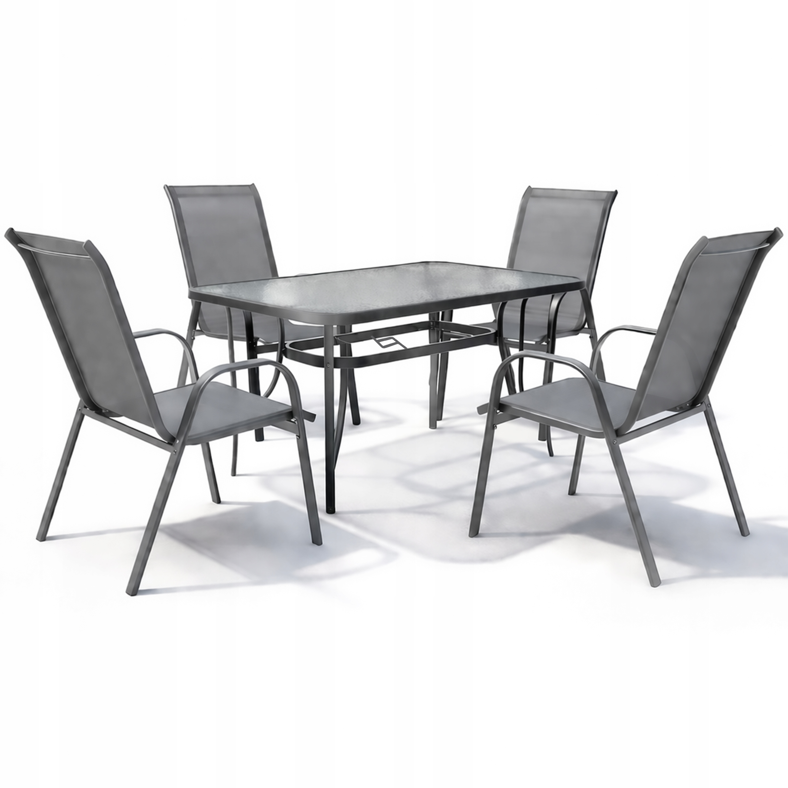 ZESTAW MEBLI OGRODOWYCH BALKON TARAS STÓŁ 120x70 +4x KRZESŁA MINORKA SZARE Liczba elementów w zestawie 5